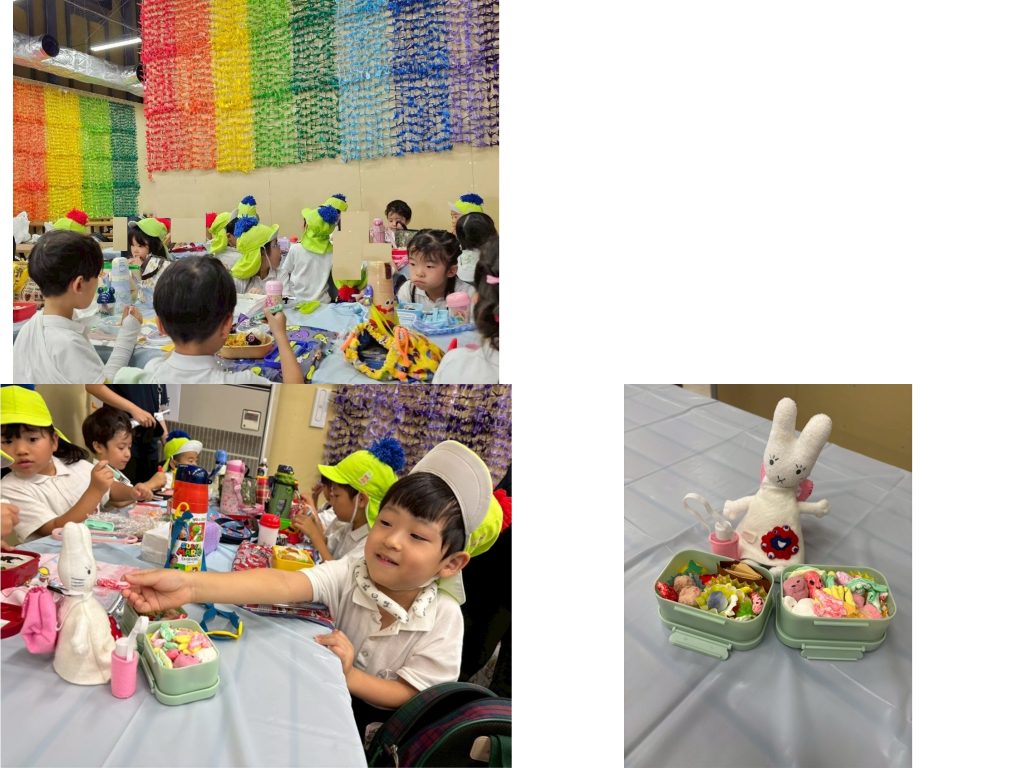 お弁当は、涼しい休憩室で食べました。楽しみにしていたお弁当、蓋を開けると、子どもたちから「うわぁ~」「みて~」と歓声⁉が上がっていましたよ。