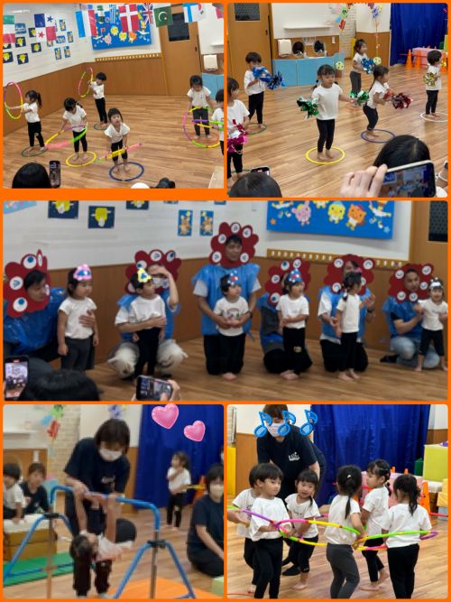 体操・トンネル・マットのお山で体を動かしたり、たくさんの方々が見守る中でもご機嫌な子どもたちでした🩷