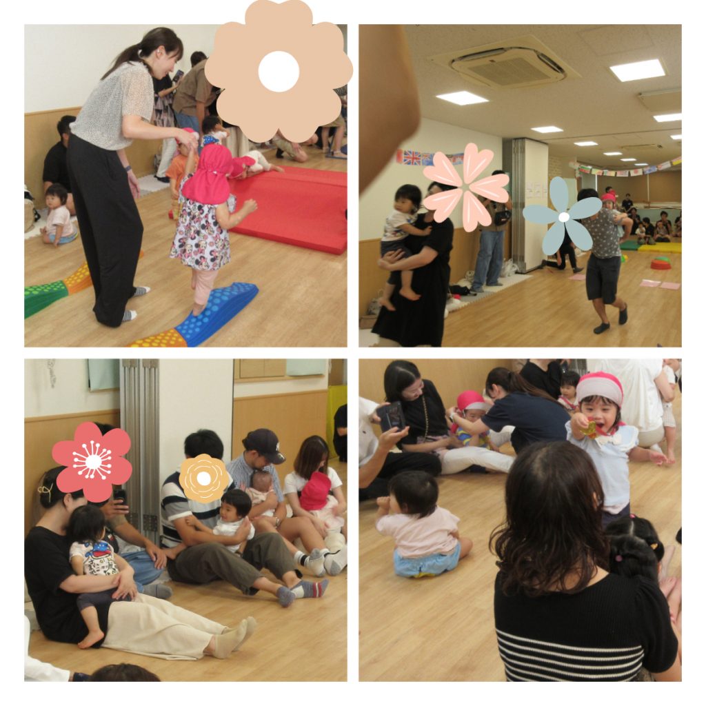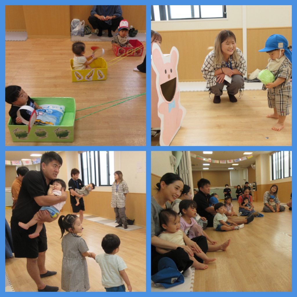 触れ合いあそびでは、お父さんお母さんたちとたくさん触れ合って遊びました。子どもたちのかわいい笑顔や声がたくさん見られました。