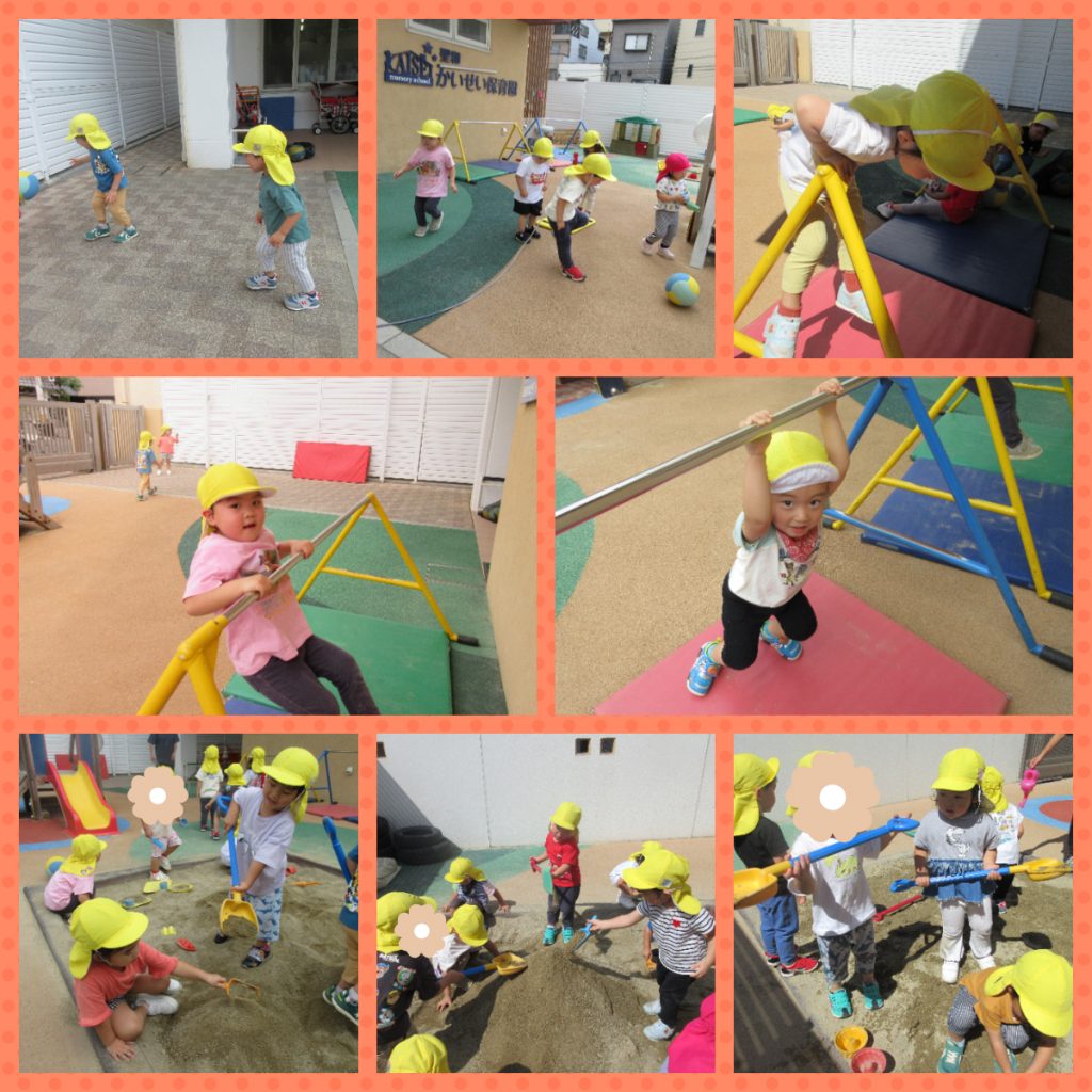 まだまだ暑い日が続く9月ですが、たいよう組の子どもたちは、お外でもお部屋でも、運動遊びなどを通して元気いっぱいに体を動かして楽しんでいます。
