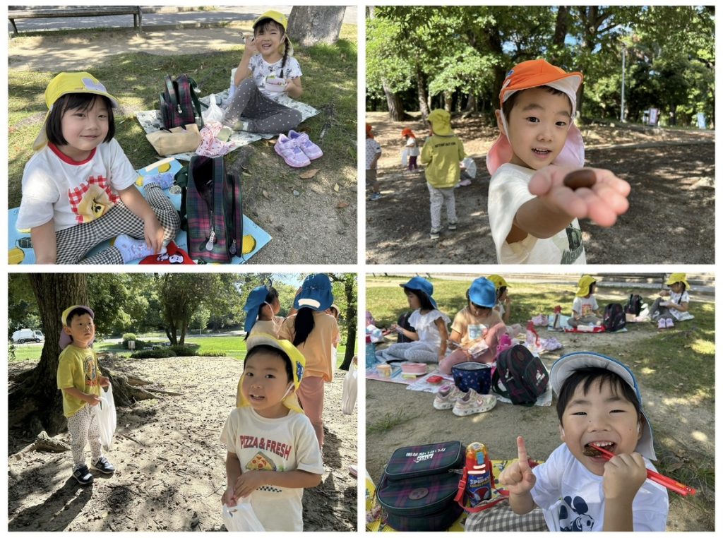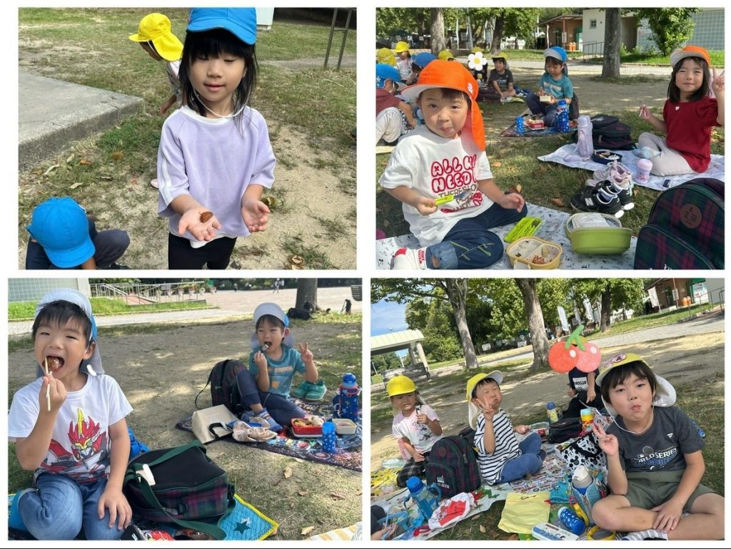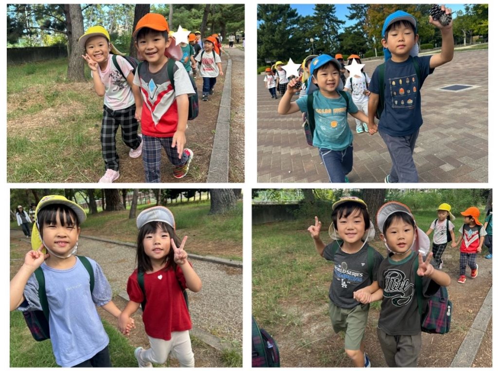 すっかり秋らしくなり、気持ちの良い気候の中、ぶどう組(3.4.5歳児)は緑地公園まで遠足に行ってきました♪
