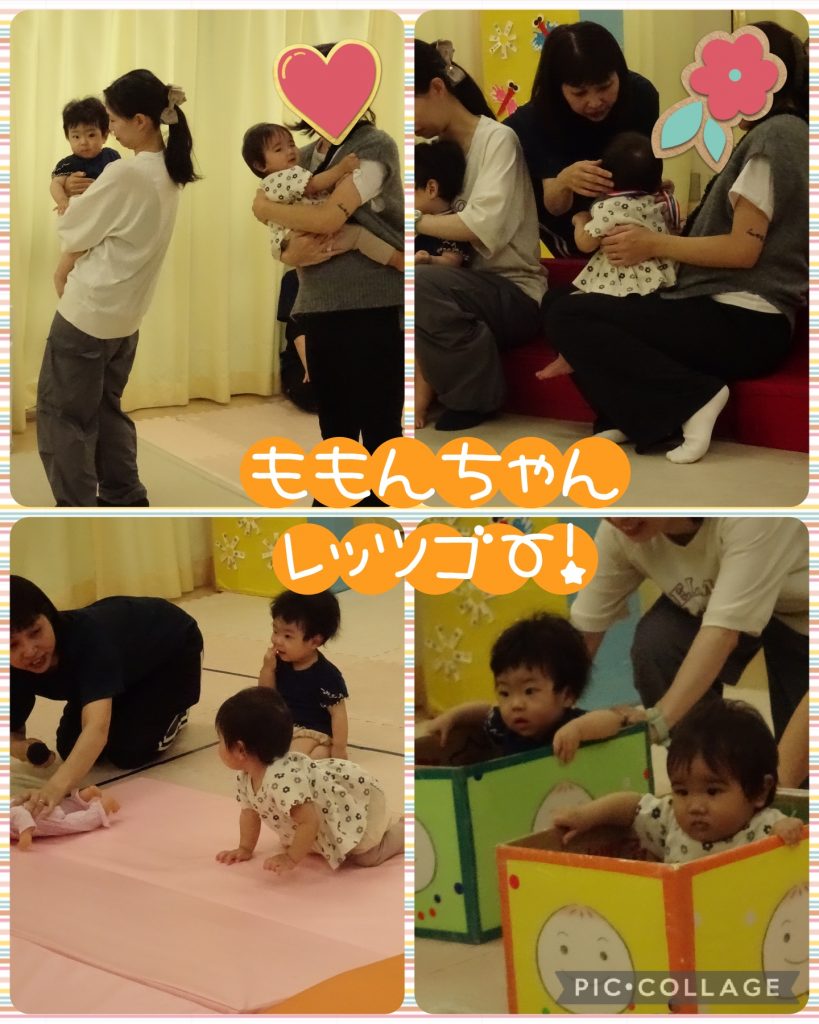 ももんちゃん号に乗ってお母さんといっしょ・お父さんといっしょ、ドライブを楽しんだ後は、マットのお山を頑張って乗り越えました。そして、お母さん・お父さんに抱っこしてもらい、ふれあいあそびでは「だっこして、ギュッとして♬ギュッ!ギュッ!ギュッ!」笑顔いっぱいのひよこ組の子どもたちでした♪