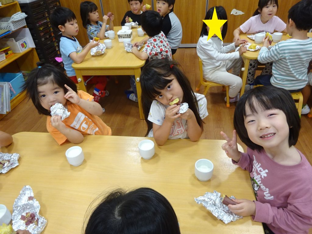 部屋ののなかで「焼き芋大会」を楽しみました♪