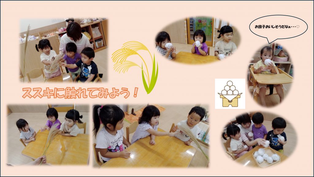 そして、「お月見って何なのかなぁ~」などお話を聞いて、本物のススキに