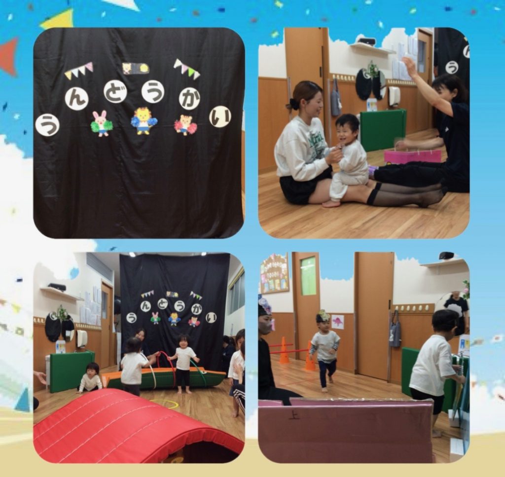 鉄棒やマットでの前回り、トンネルやお山など、