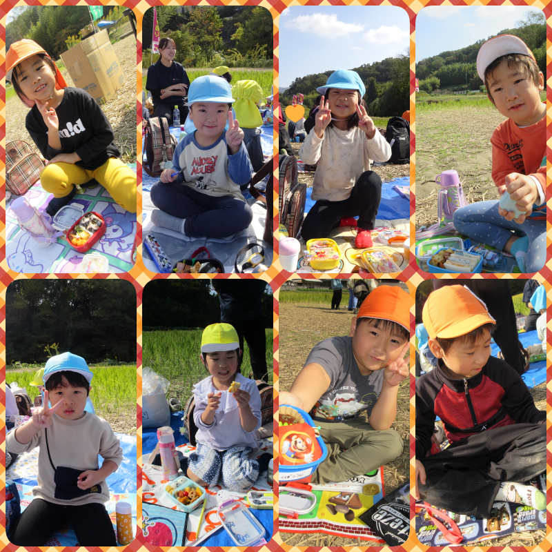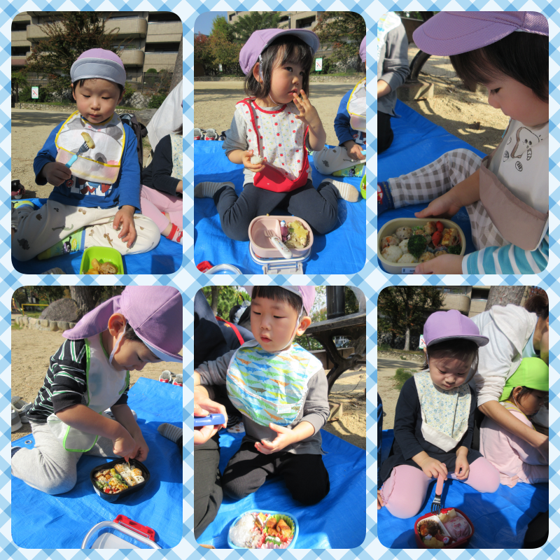 楽しみにしていたお弁当タイムは、お友達とお弁当を見せ合いっこしながら、笑顔で食べていましたよ。