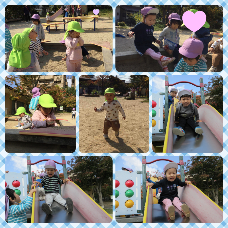 気持ちの良い秋空が広がる11月7日に、0歳児(ちゅうりっぷ組)、1・2歳児(たんぽぽ・ひまわり組)、幼児クラス(にじ・ほし・たいよう組)に分かれて秋の遠足に行ってきました。