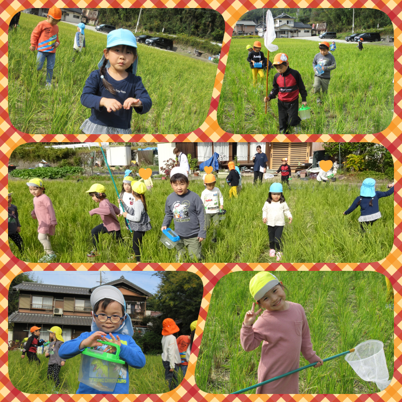 お弁当を食べた後は田んぼで遊びました。虫を捕まえたり、元気に田んぼを走る姿が見られました。