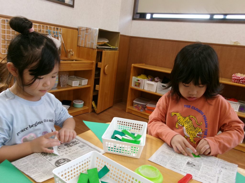クリスマス製作では色々な素材を使用しツリーを作りました🎄