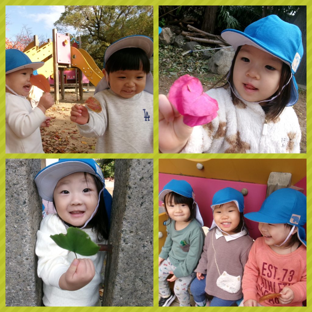 子どもたちは寒さなんてへっちゃらな様子で公園や神社を駆け回っていました!きれいなはっぱを見つけるたびに友達と見せ合ったり、保育士のもとへ見せに来てくれる姿にほっこり♡