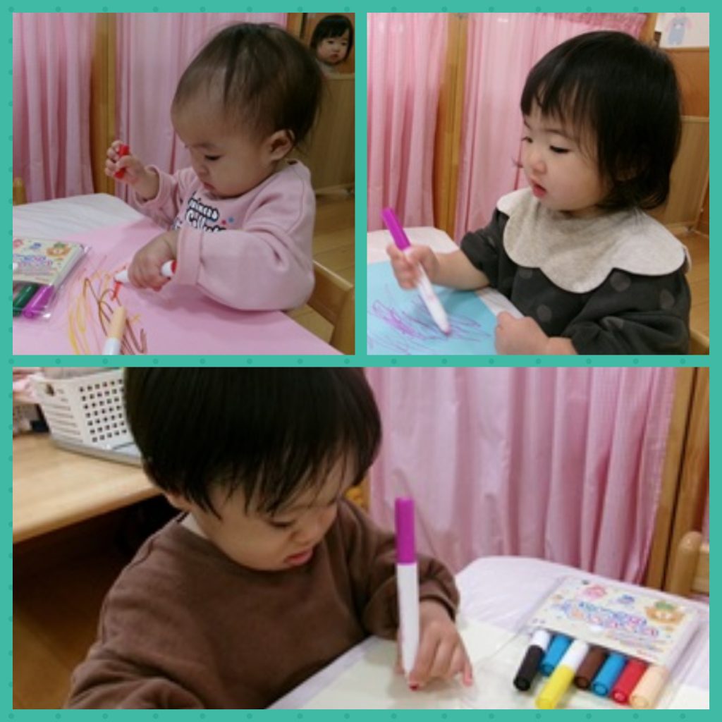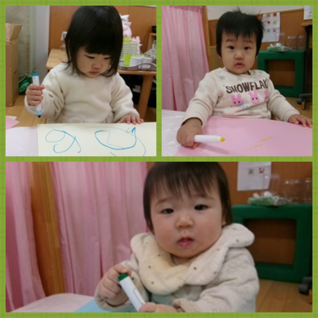 ダイナミックにペンで描き描き~!様々な色のペンを使い、楽しむ姿が見られました。