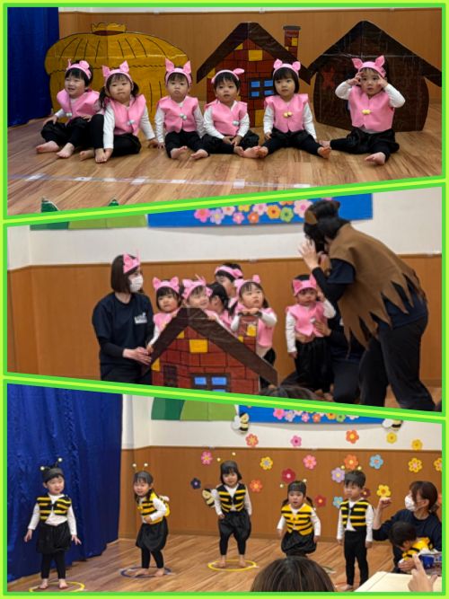 🐿️りす組は【三匹のこぶた】の劇遊びをしました。こぶたさんは狼さんと仲良しになりました🐷🐷🐷
