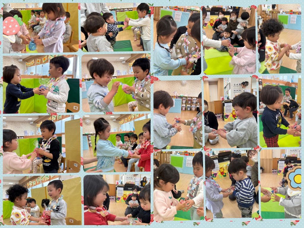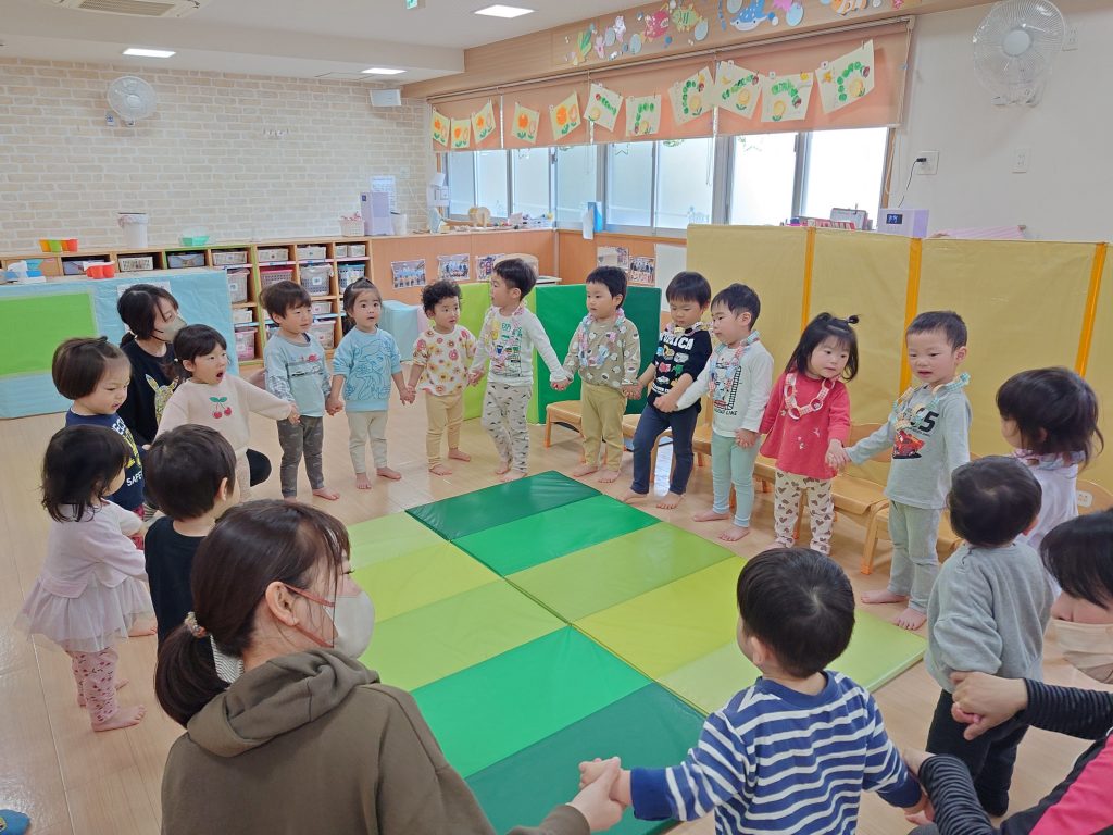 みんなで手をつないで「♪みんなともだち」の歌もうたいました🎶うさぎ組が毎日歌っていたので、りす組やひよこ組の子どもたちもすっかりと覚えていましたよ。