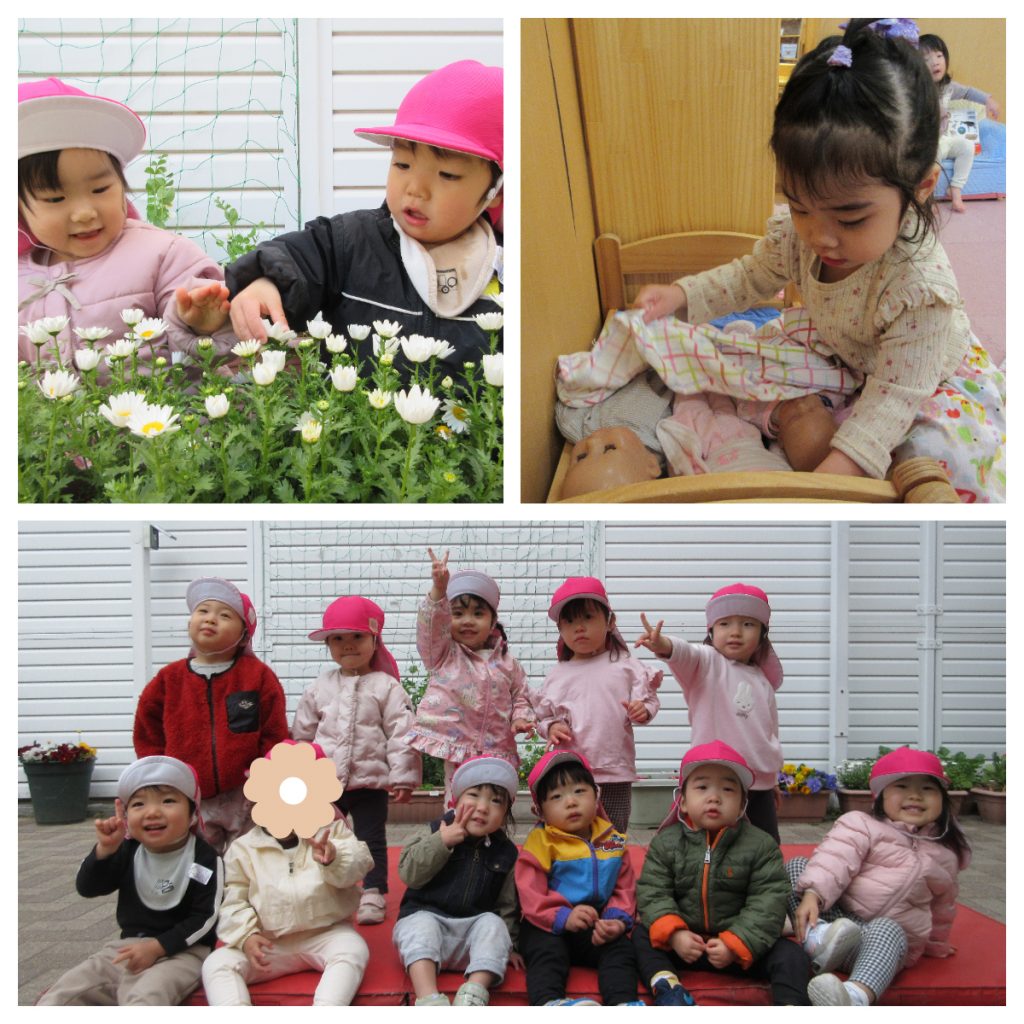 お友達がしていることに興味を持ち同じ遊びをしたり、名前を呼び合って会話を楽しんだりする様子がとても微笑ましいです。