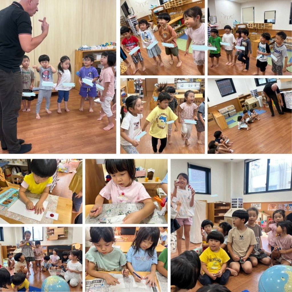 世界のいろいろな国に触れながら、楽しく準備を進めています。 そらぐみ・だいちぐみは、英語の活動も取り入れながら、 さまざまな国の国旗について調べ、自分の描きたい国旗を 思い思いに描いてくれました。 運動会本番に向けて、気合も十分です!きりんチームは、太鼓の取り組みがいよいよ佳境に入り、 毎日真剣な表情で頑張っています。 その凛々しい姿は、本番が楽しみになるほどです!