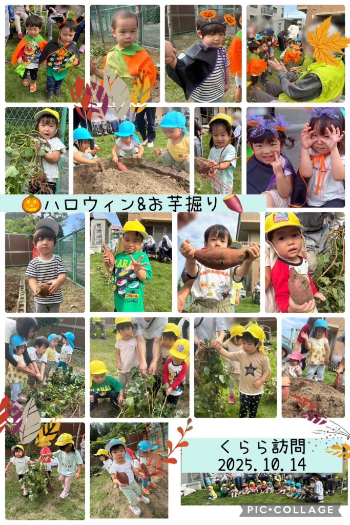 そのあとは、くららの畑のおいもを掘らせていただきました🍠「見て~!」「おおきいよ」と採れたサツマイモを嬉しそうにおじいちゃん、おばあちゃんに見てもらいに行っていたみんなです🎵楽しかったね✨