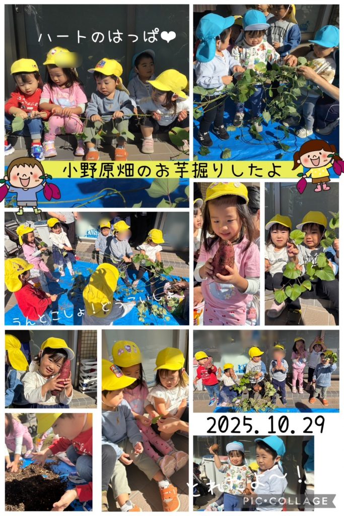 「くらら」のお芋ほりから2週間!ついに、小野原畑のおいもも収穫しました🎵いつも、「ハートのはっぱ💓」と嬉しそうに見ていた小野原園のみんな✨