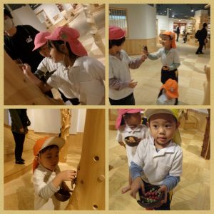 バスの中では、大好きなわらべうたを歌ったり、持ち物チェックのゲームをしたり、バスでのお約束〇×クイズに挑戦したりと、楽しい雰囲気の中で奈良おもちゃ美術館に向かうことが出来ました!!