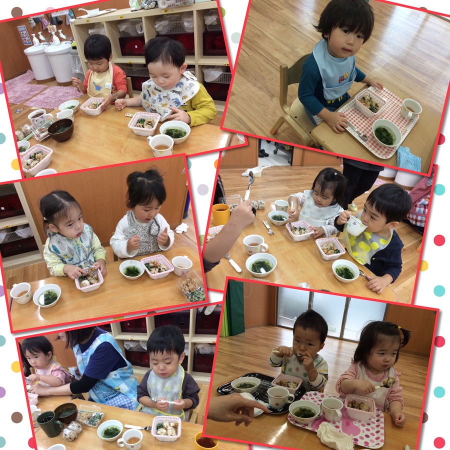 遠足ごっこを楽しんだ後は、給食の先生がお弁当給食を作ってくれました🍙