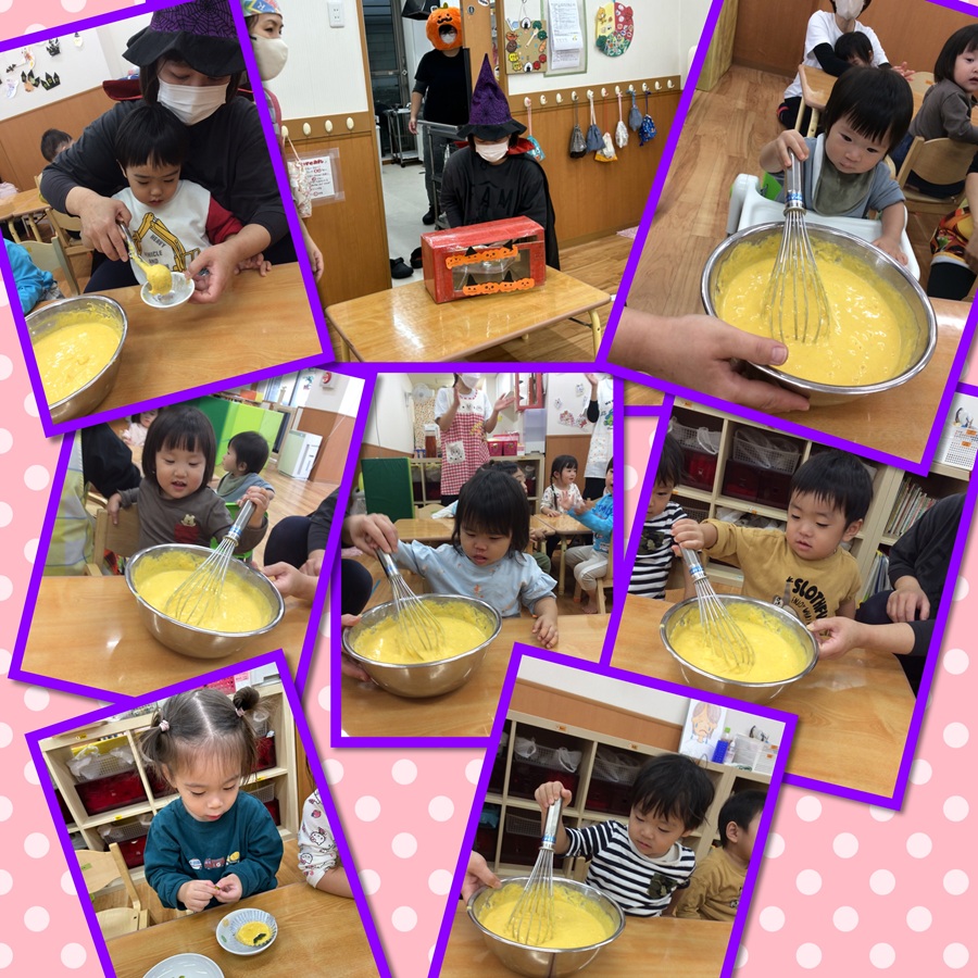 3時のおやつにみんなで仮装して自分で作ったカボチャのマフィンをおいしそうに食べていましたよ😄
