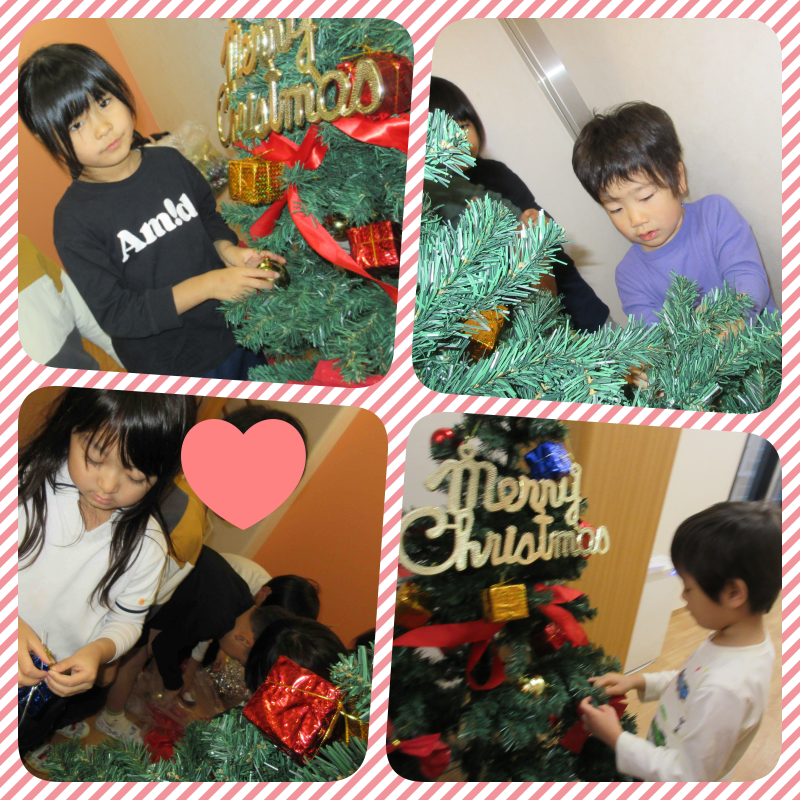 12月に入り、保育園に大きなクリスマスツリーが飾られています。飾りをつけてくれたのはたいよう組さんです。毎日保育園に来るとき、帰るときに出迎えてくれるツリーにウキウキ心弾む子どもたちです。