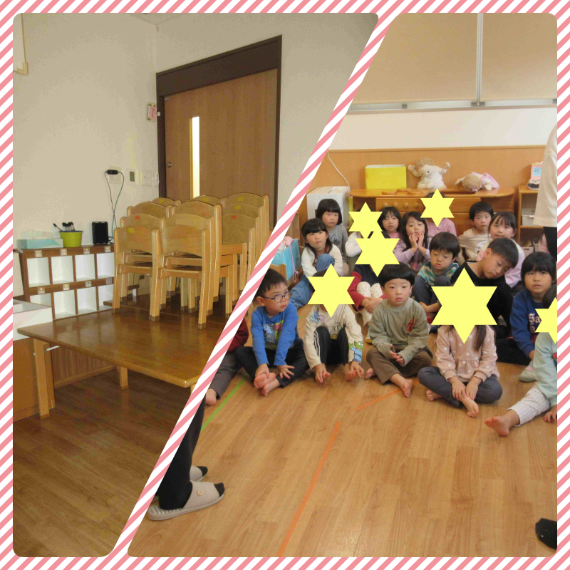 保育園では、毎月様々な災害を想定した避難訓練をしています。12月の避難訓練は警察の方が来て下さり、不審者対応の訓練を行いました。職員が門から入る際に警察の方が扮した不審者が一緒に入ってくるという想定。子どもたちはお部屋の奥に避難しました。電気を消し、ドアの前に机や椅子でバリケードを作ったうす暗い室内は緊張に包まれていましたが、状況を察知して大きな声を出さず静かに安全が確認できるのを待っていました。幼児クラスさんは、訓練の後、先生からのお話の中で出た質問にも、一生懸命考えて自分の意見を伝えていました。