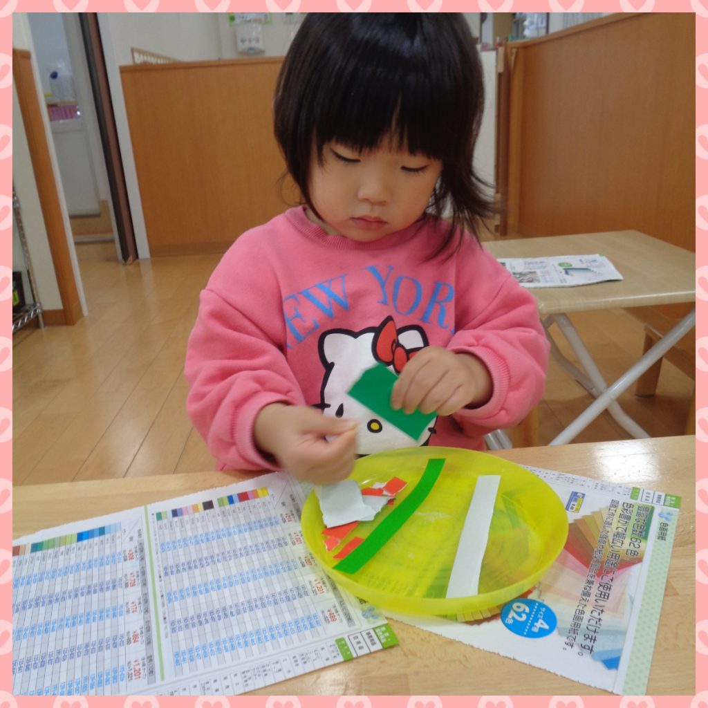 手でビリビリ!!ちぎりがみもしました😊