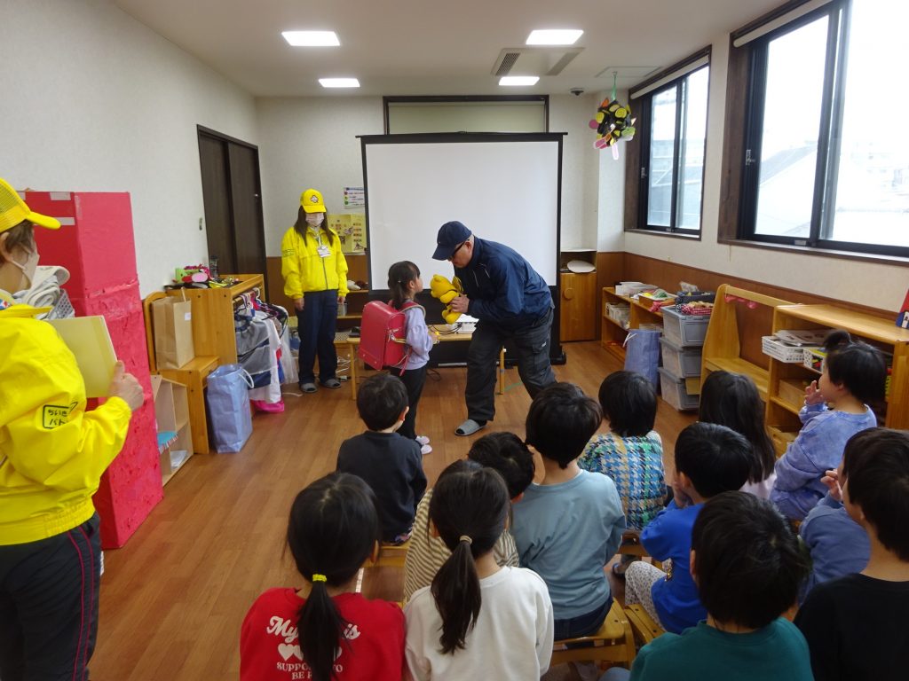 警察の方も来ていて真剣な表情で話を聞くぞうチーム。クイズをしたり、実際に友だちがやって見せたりと楽しんで学ぶことができました。