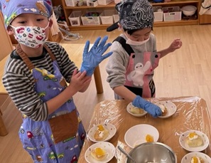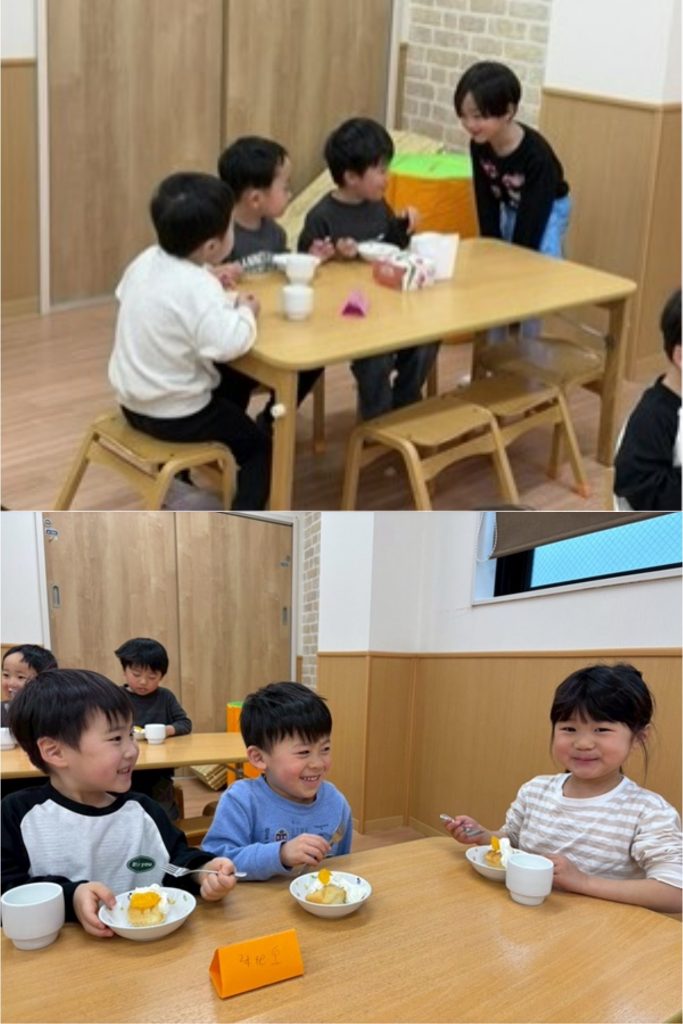 2月12日(木)には、クッキングでスペシャルカップケーキ屋さんをしましたよ🍰スモールシアターで披露したごっこ遊びを、本当の午後のおやつの時間にカフェ店員になりきって行いました✨