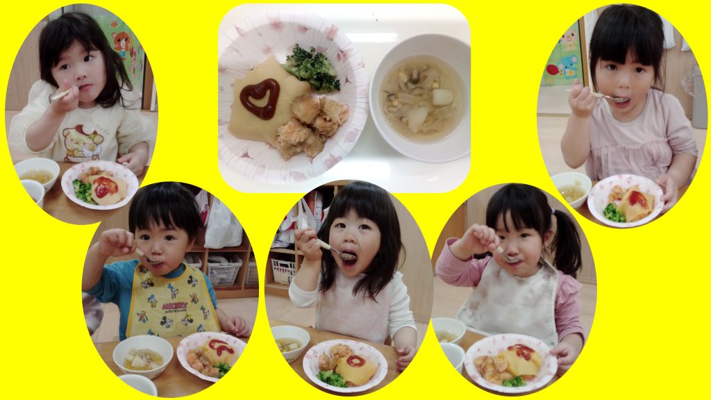 そしてこの日の給食のメニューは、オムライスと鮭のフライ。