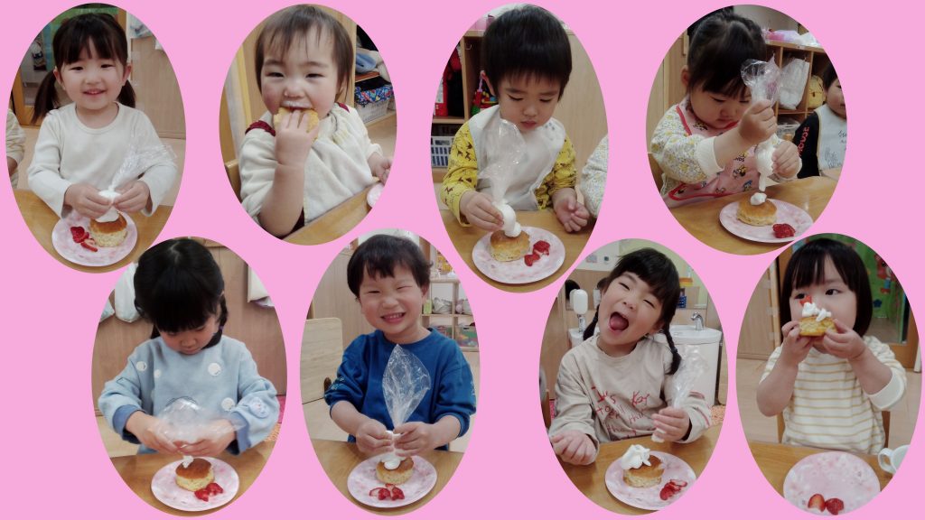 やはり自分で作れることがとても嬉しいようでどの子もニコニコで、普段のおやつの時間以上に楽しそうな雰囲気でした😊