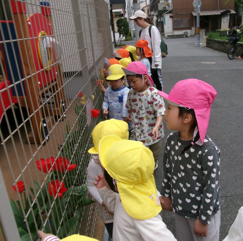 これまでお兄さんお姉さんに手を繋いでもらっていた新ぱんだチームさん。友だち同士でもしっかりと並んで歩けるようになっています。新ぞうチームさんは、時々よそ見をしてどこかへ行ってしまいそうになる新きりんチームさんの手を繋いで「こっちだよ」と優しく教えてくれています。